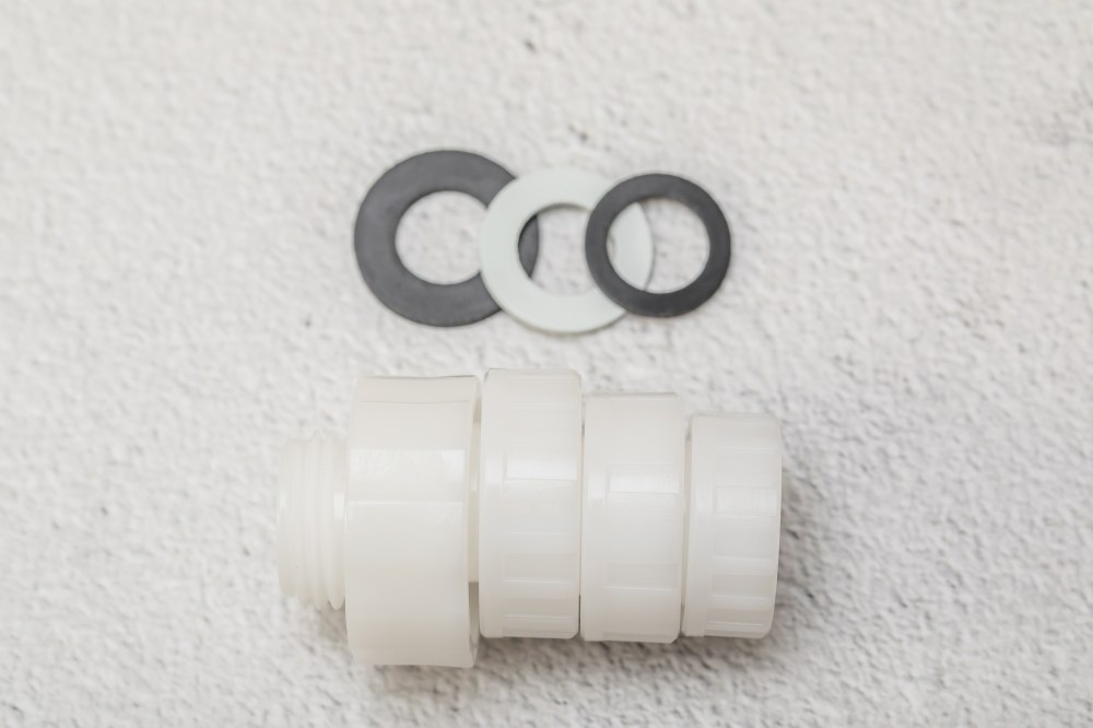 說真的,這部分就是Takagi舒適Shower蓮蓬頭水管組的厲害所在,也是方便組裝度與貼心度展現的最佳時刻,因為它們一共提供了四種不同大小的轉接頭,而且還搭配了三種尺寸的墊片,讓大家根本不必擔心尺寸不合
