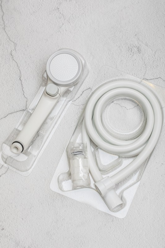 完成蓮蓬頭跟專用濾心的組合之後,再來就只剩下蓮蓬頭跟水管組的配套了