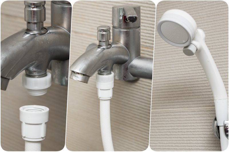 再來的最後一個步驟,就是要把整隻蓮蓬頭跟水管組接上水龍頭。不過大家一定會問,但是每個家裡的水龍頭尺寸都未必相同,那到底該怎麼辦呢?