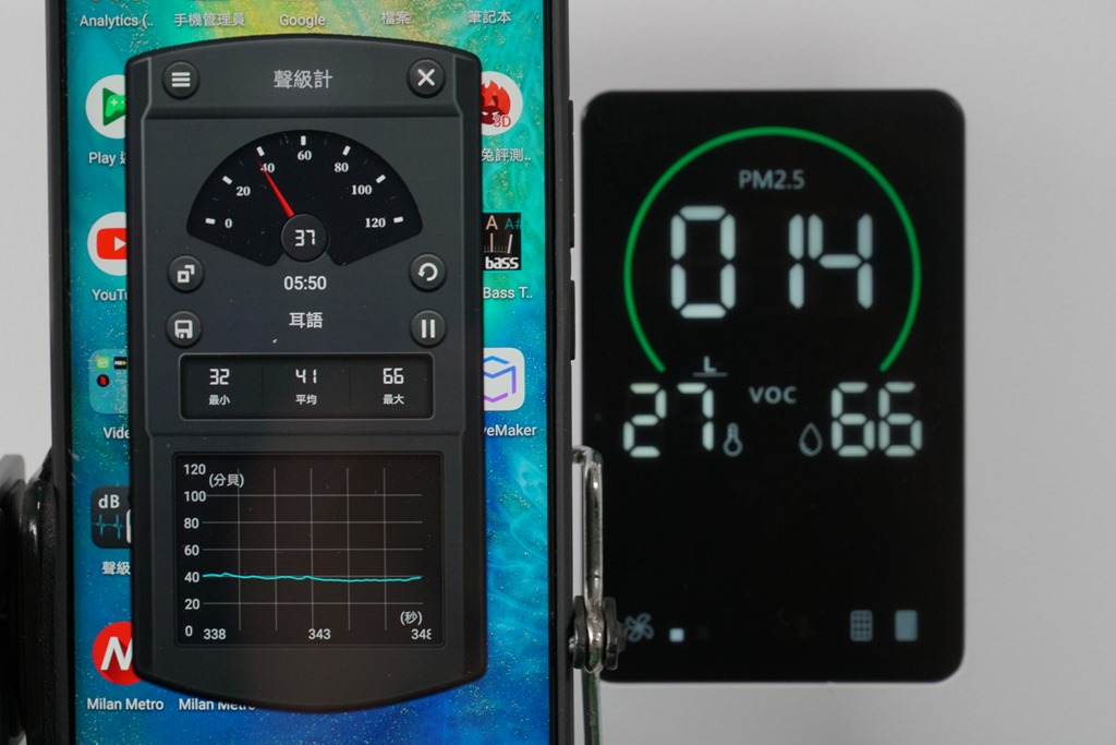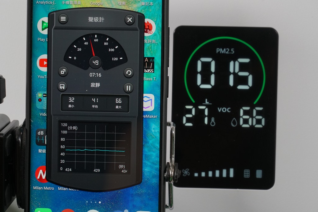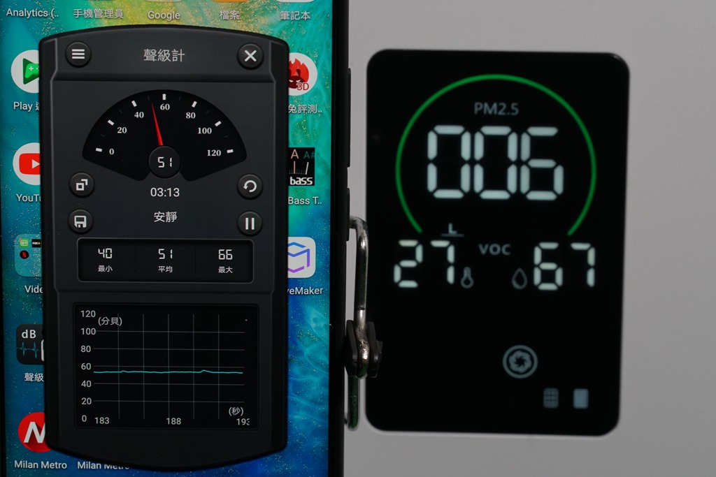 最後切到超強力清淨模式,也是整機設定上最強的模式,音量也只有 51 分貝,到底運轉最大聲量 60 分貝怎麼測的呢?