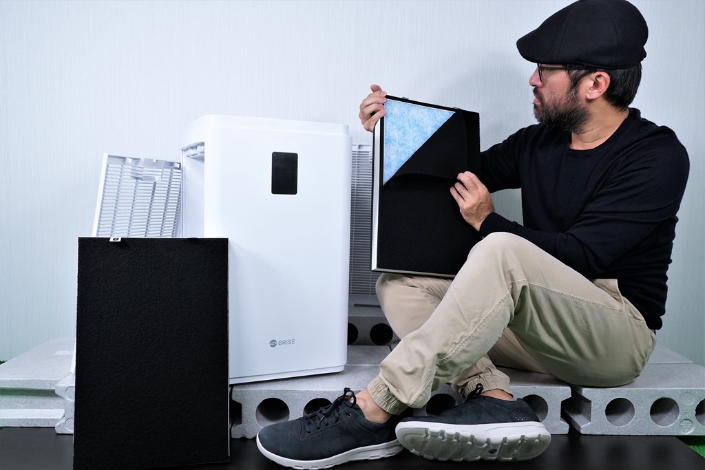 機身左右兩邊各有一組濾網,可提供更大的進風量,濾網具有五重濾淨系統,從最外層攔截毛髮皮屑的黑色活性碳前置濾網、減緩病菌孳生的抗菌布、有效過濾 99.9% PM2.5 微粒的 HEPA 濾網、過濾甲醛與有害氣體的 VOC 濾網與最後可以除菌、除有害氣體與抑制病菌的 TiO2 光觸媒,讓過濾後的空氣更乾淨。最棒的設計是黑色活性碳前置濾網與主濾網是分開的,前置濾網作為攔截大型髒汙,更容易受汙染壽命也較短,所以必須經常更換,而主濾網經過前置濾網的保護下,可有更長的壽命,平均一年只要更換一次。所以能夠分開更換,除了可以保障過濾品質外,也能幫大家節省花費。另外,BRISE 研發出一套 HEPASmart 技術,依據室內環境狀態來計算濾網壽命,可讓濾網保持在最佳狀態,只要濾網該換了,會直接在 APP 上通知並可直接下單送到你家,超級方便。