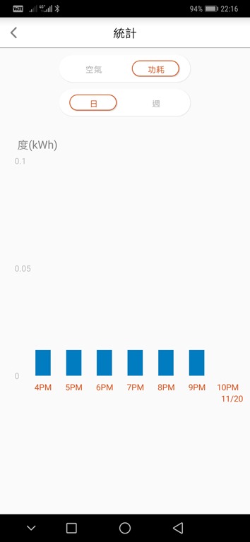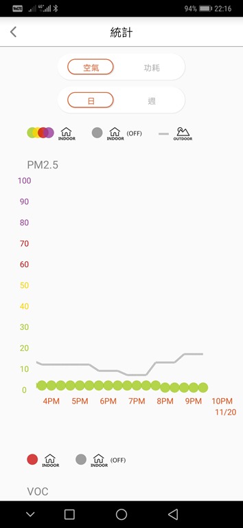 如果你想要觀看場域空氣品質變化或是耗電量變化,APP 也都將資訊收集進來了,以圖表方式更容易一眼看清楚空氣品質與功耗走勢。