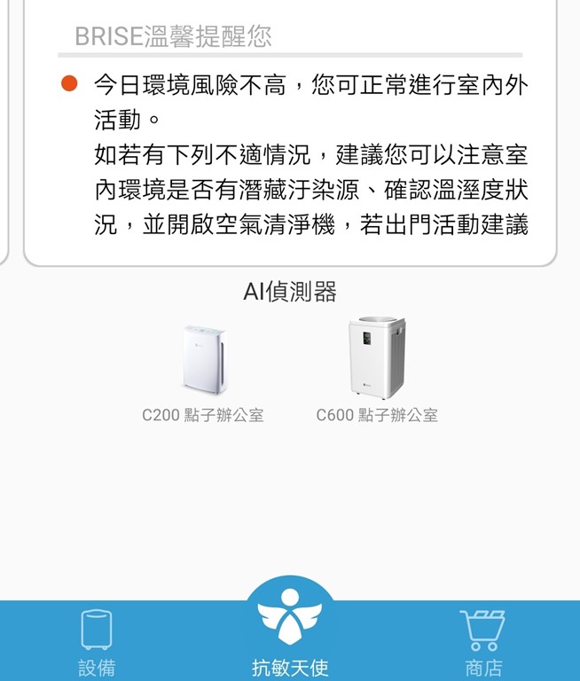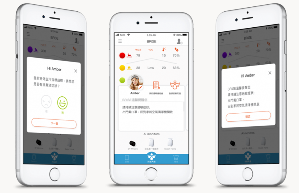 AI 抗敏天使是與專業醫師設計問答,並搭配居家與周邊環境空氣品質,經過雲端運算判斷並詢問過敏症狀,最後給予適當的照護建議。過程就好比專業醫師問診一般,並加上更理性的判斷,可讓過敏得到舒緩與預防。除了與醫師合作開發外,還參考過敏相關醫學論文、期刊發展而來,是非常科學的判斷,這也是過敏兒家中最需要的系統。