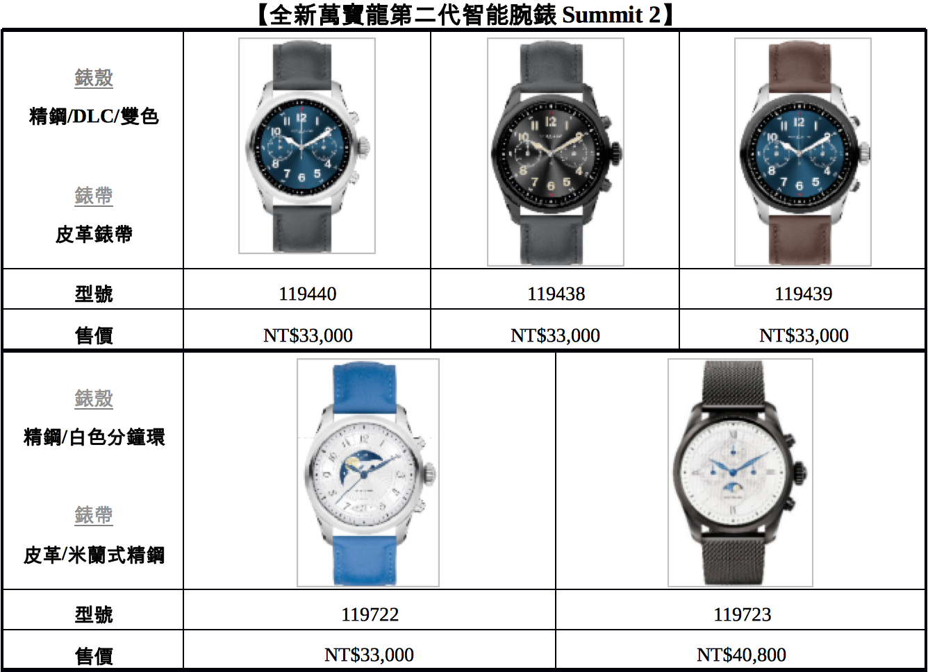 萬寶龍Summit2系列是首款搭載高通Snapdragon Wear 3100 晶片組的奢華智能腕錶,以全新的數位規格寫下高級智能腕錶新篇章。採用更為精巧的42mm錶殼尺寸,同時適合男、女配戴,具有機械腕錶的外觀,並配置最新的的Wear OS by Google處理系統,可與iOS和Android系統之智能手機相容使用,讓無論是工作、休閒、健身或是旅行,都能夠為每一天的冒險帶來時尚氣息與動力。