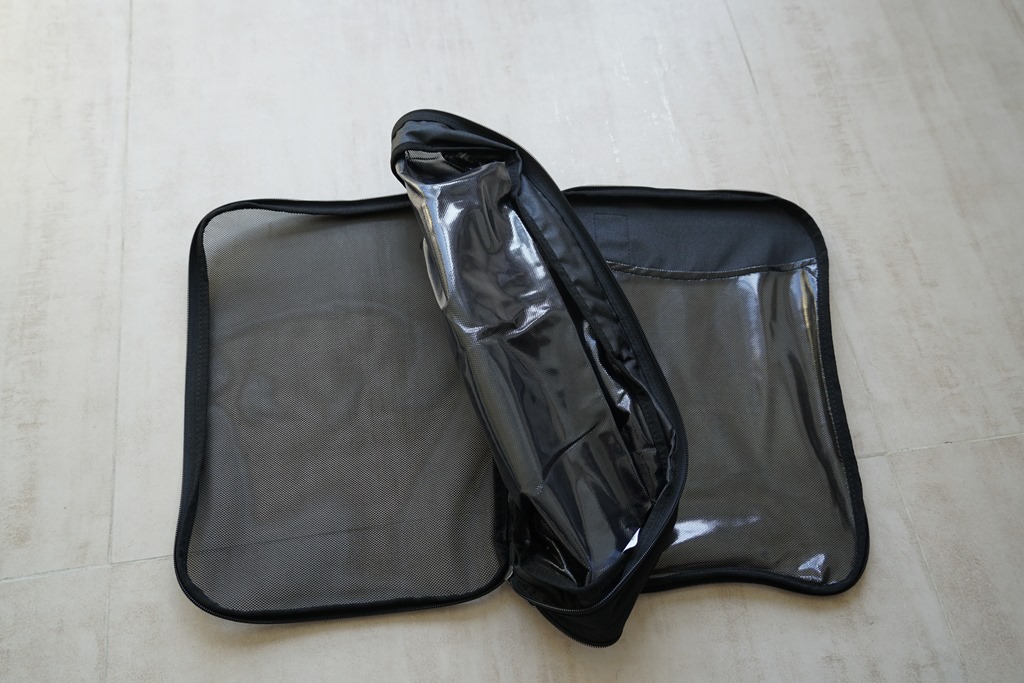 Eagle Creek 這款雙面收納打理包,就是讓你更方便收納衣物使用,他一面是透氣的網狀設計、另一面則是防水袋,兩面中間的隔層一樣是防水隔層。