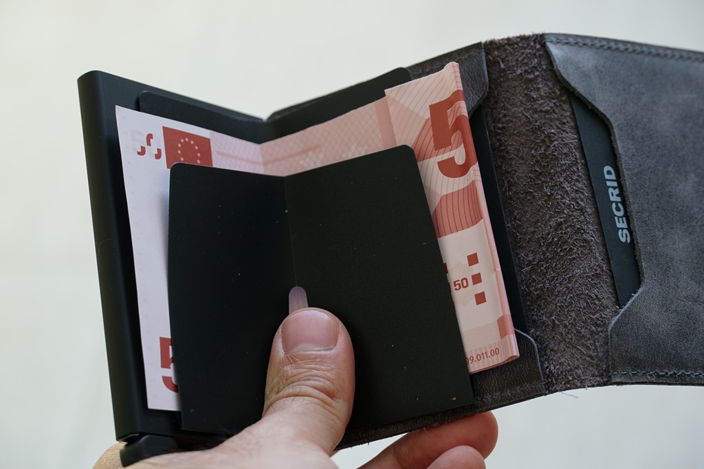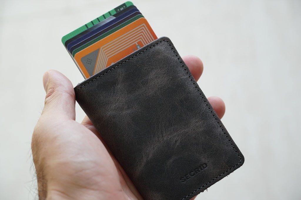 在部分扒手技術高超的國家,我幾乎都不會帶著皮包出門,大多以更小更容易收納的信用卡並搭配紙鈔就出門了。因為可以容易放在暗袋,被摸走的機會相對低。SECRID 推出一款真皮卡夾,可收納至少六張信用卡或交通卡,需要使用時,只要按下底下的按鈕,卡片們可即刻直接層疊式滑出。卡片夾還具有 RFID 防側錄功能,保障晶片卡使用安全不被盜錄。