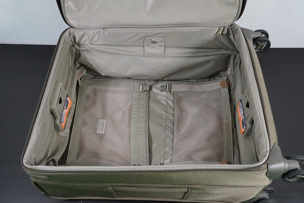 通常出門時行李都不會太滿,但行程結束後可能會帶回不少當地的資料或是伴手禮,這時行李箱非常有可能會滿出來,這時你要手提呢?還是多買一個行李箱裝呢?BRIGGS & RILEY 行李箱的壓縮功能,可以讓你少擔心一點,它的壓縮功能非常特別,將擴充裝置拉開後,行李箱裡面就會多出非常多空間,裝完拉上拉鍊後往下一壓,直接可以幫你把衣物多餘的空氣擠出,就好像真空袋一樣便利。建議如果行李中有易碎物品時,押實的時候要特別小心,但個人非常不建議將易碎物放在需要托運的行李箱中,因為你不會知道何時會遇到亂摔行李的不良地勤。