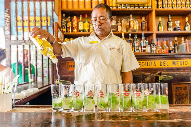 因為萊姆酒是蔗糖蒸餾而成的所以基本上會比較甜,所以通常不會單喝,而是當作調酒的基底,最著名的便是「Mojito」或是「Daiqulri」。當中最有名的酒吧非老人與海的作者海明威最愛的「柏迪奇達酒吧」(La Bodeguita de Medio),甚至有人說來到哈瓦那,沒到這間酒吧喝上一杯「Mojito」就不算來過古巴。but…這一杯海明威喝過的「Mojito」要價5CUC」等於台幣160左右。難怪風趣的古巴人說他們有三個神,其一是「真神」耶穌,第二是他們的「革命之神」切,格瓦拉,最後一個是他們的「財神」海明威。