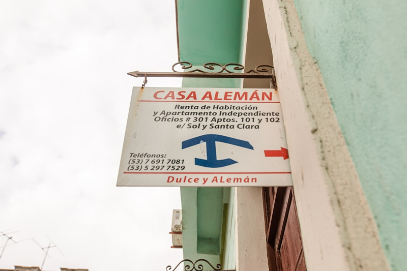 在古巴只要你看到像這樣藍色有一點像水手錨的LOGO,就是有提供民宿的地方,都可以進去問看看當天有沒有空房。要注意的是這裡的民宿是主人也住在裡面的民宿,也就是說要跟當地的古巴人生活在同一個屋簷下,費用從10CUC到100CUC都有。當然想要住民宿最好懂點西班牙話,畢竟有些民宿的人英文不一定很流利。