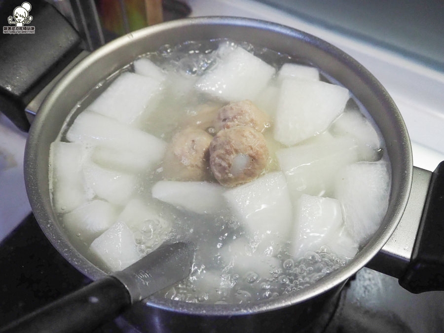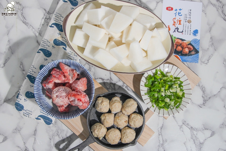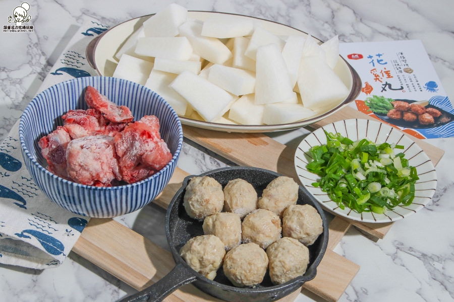 使用的食材很簡單,大骨、花雞丸、菜頭、青蔥即可