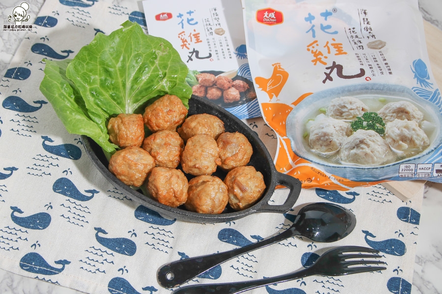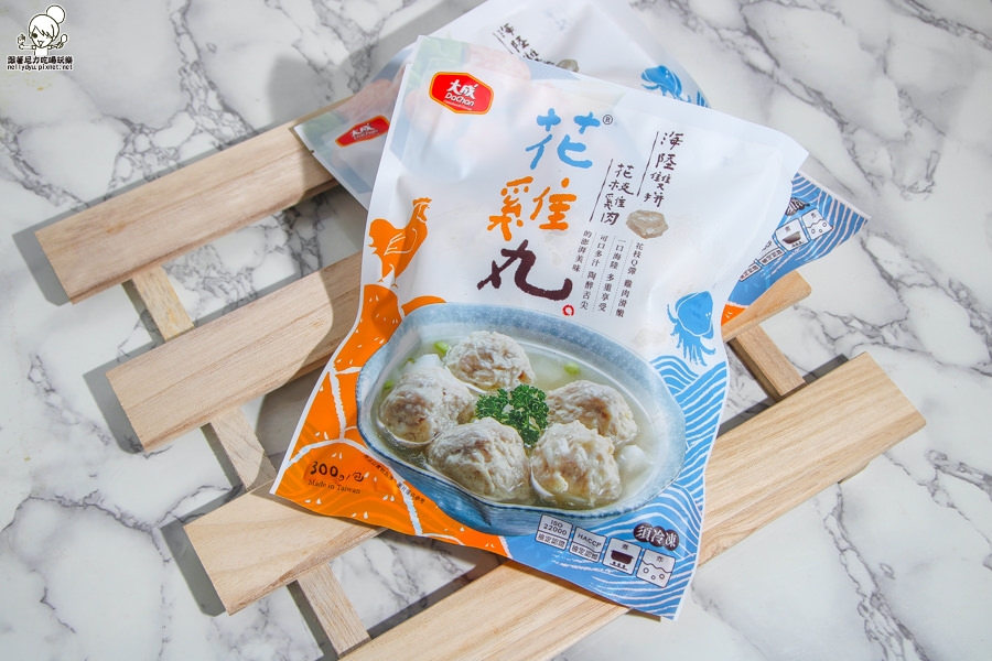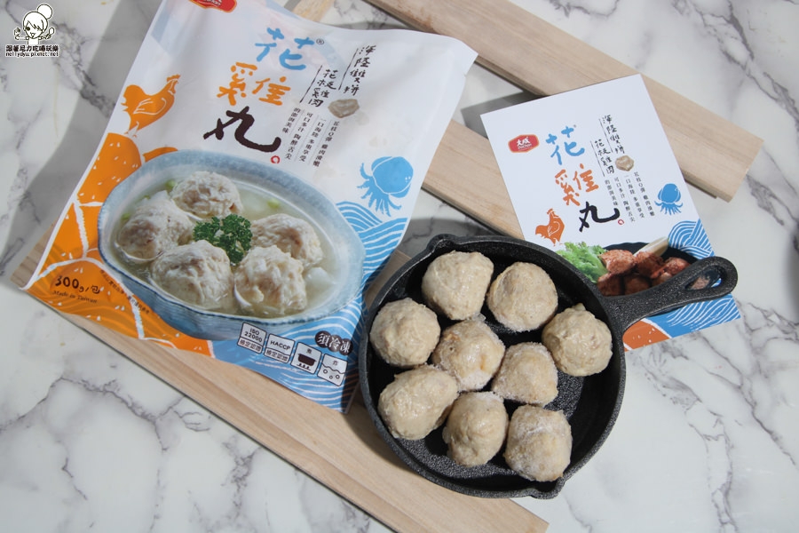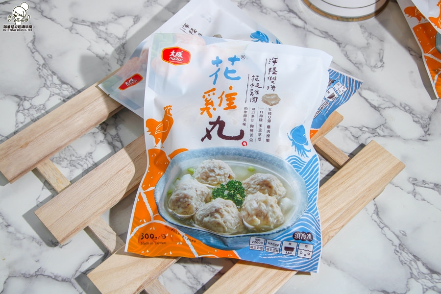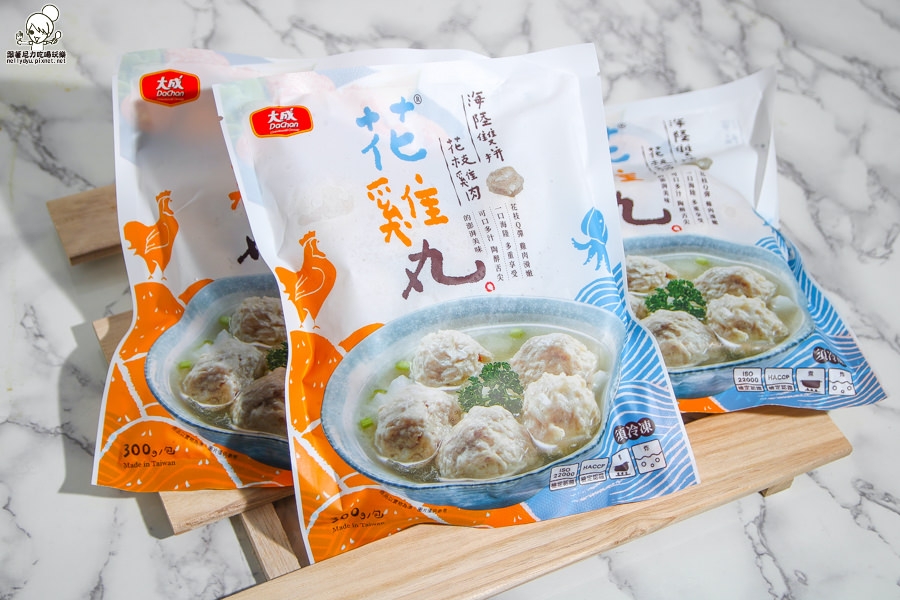 最近吃到這款由大成推出的花雞丸,一次可以海陸通吃的新鮮風味