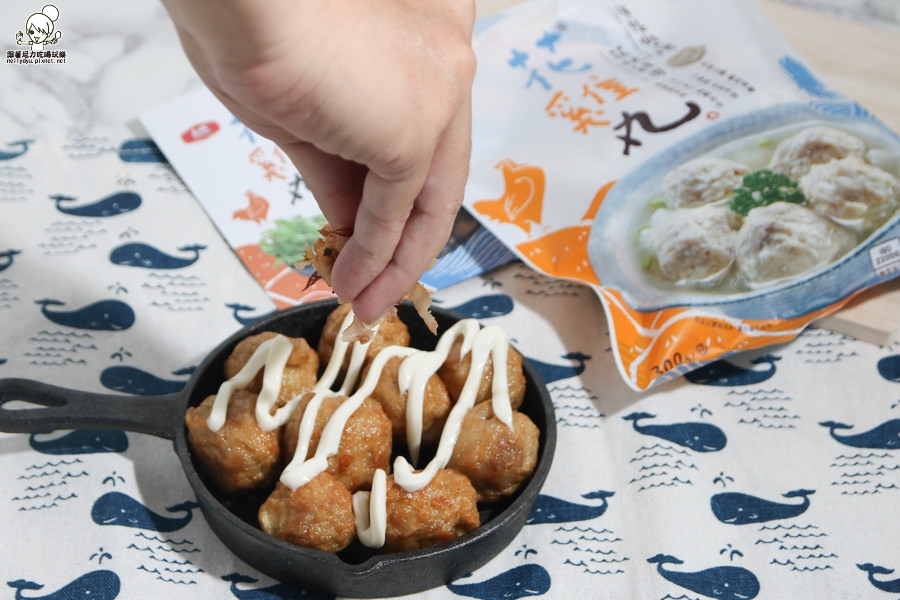 油煎後也可以製作出創意的日式花雞丸燒,淋上美乃滋