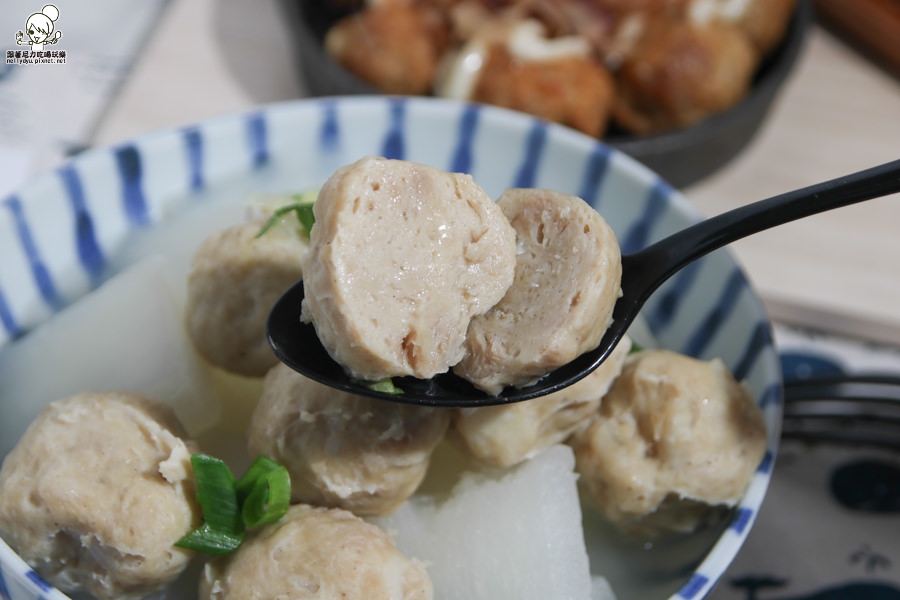 第一次吃到用雞肉搭配花枝製作的丸子,可以吃到雞肉的香氣甜味,還能咀嚼到花枝的Q彈海味