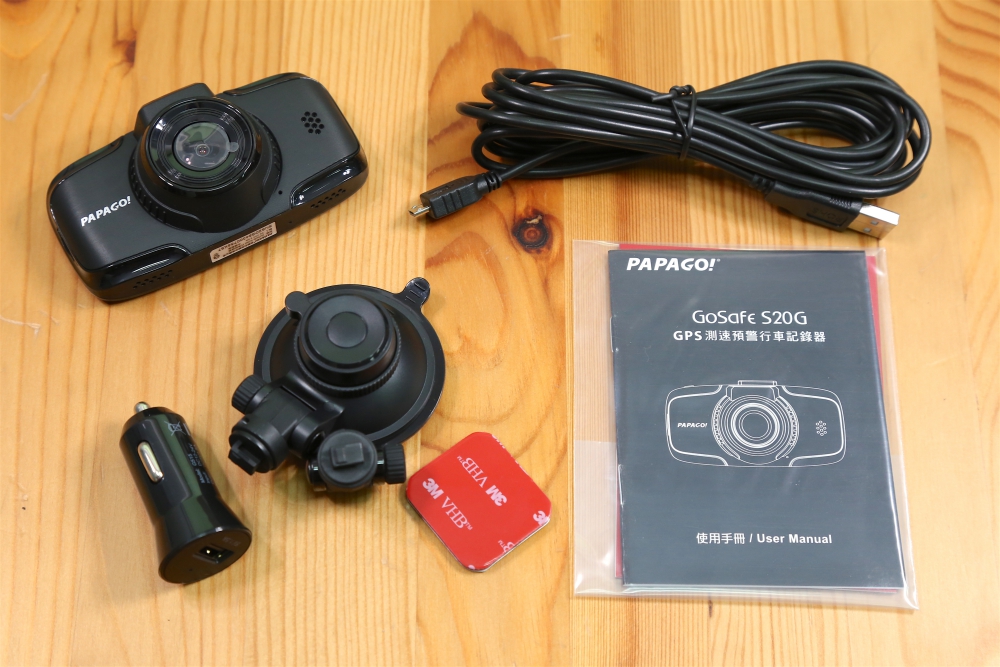 內盒標準配備有:主機、吸盤支架、黏式支架、12-24V車充、使用手冊、保固卡。