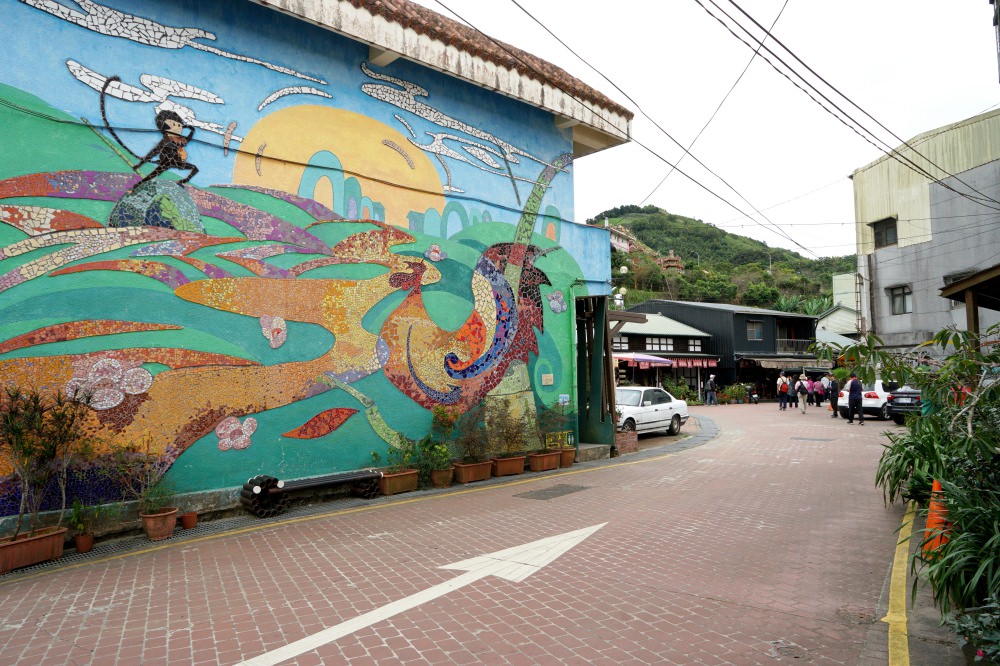 雲梯走完可以直接走下樓梯接到太平老街,不用再另外繞路或是開車就能抵達,非常方便。牆上的壁畫則是梅山文學家張文環的作品。在地人為家鄉留下的創作,特別有意義。讓我想到新竹竹東軟橋的彩繪,也是當地人的創作作品,很有趣。