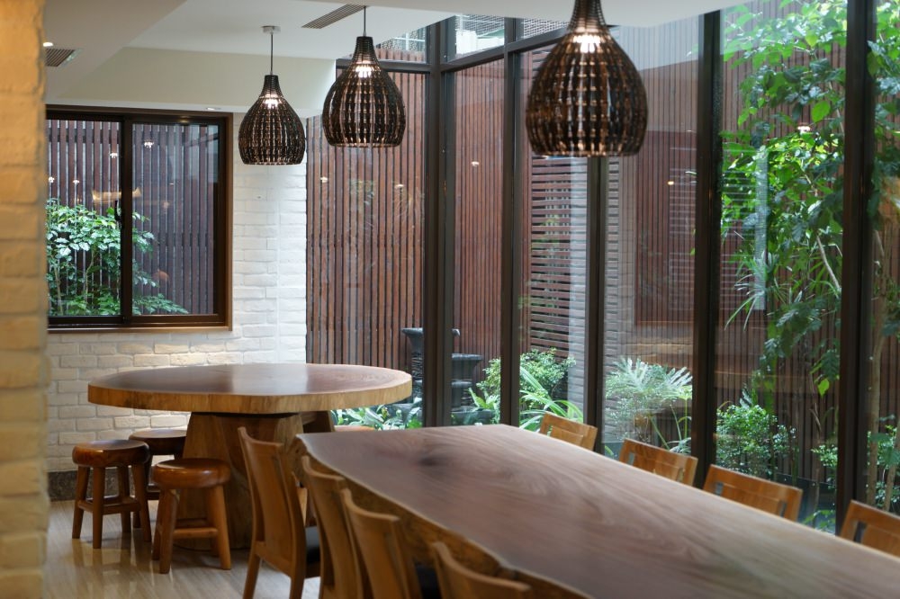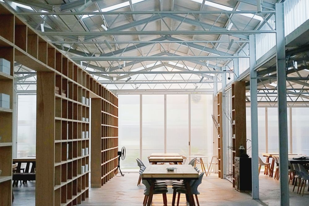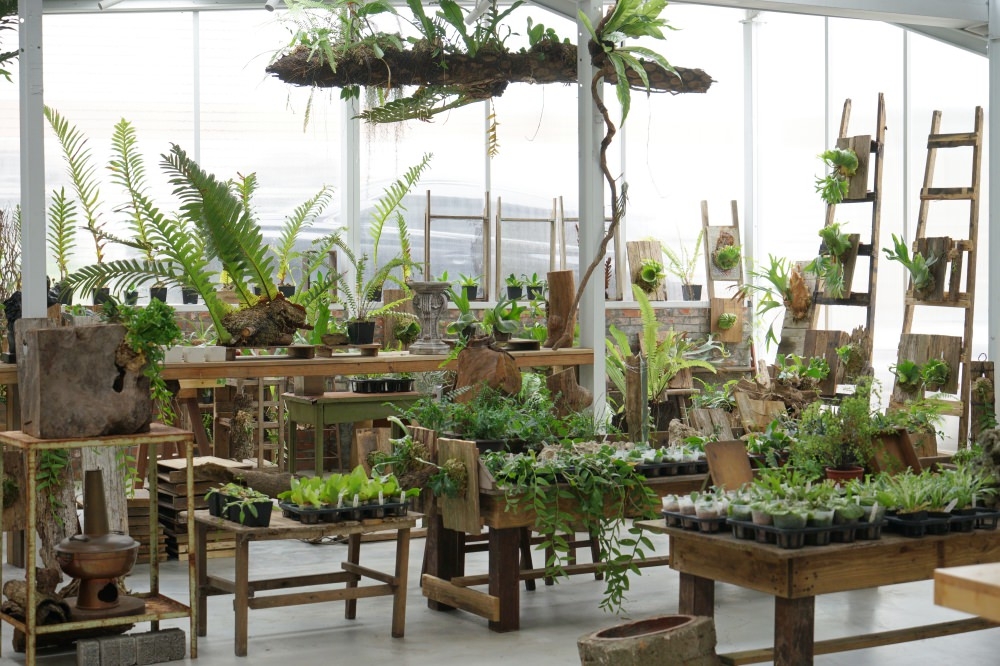 吃飽喝足我們就走回空氣圖書館,裡面空間非常大,有一區擺放了許多的植栽,這些看得到的植栽都有在販售,有興趣都可以帶回家。整個空間是半開放式的設計,沒有水泥牆的阻隔,好讓陽光與空氣自由流通,而這樣的條件也讓室內的植物健康的生長。走進山裡,感受自然的美好。