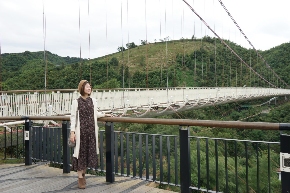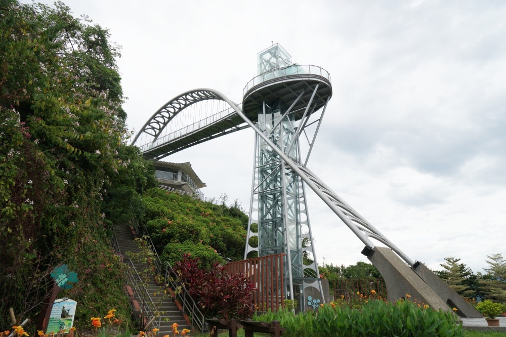 從下面走上吊橋會有一段階梯,沒有殘障步道,如果帶著嬰幼兒,建議帶背巾或是輕便的推車。