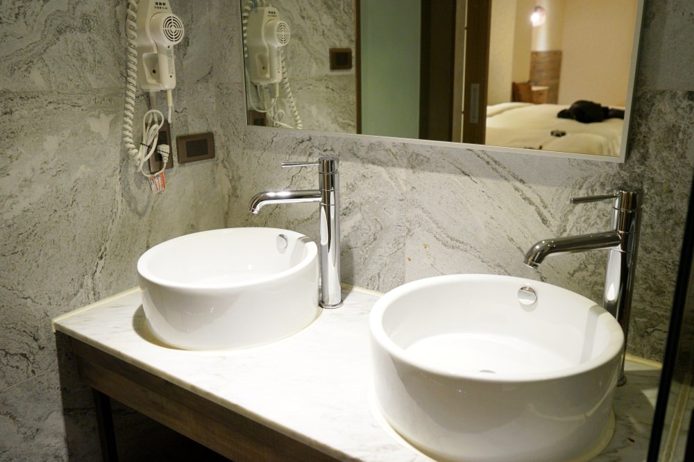 吃飽喝足總算回到飯店,我們這次入住位在文化路夜市裡面的「蘭桂坊花園酒店」,設備新穎,空間乾淨簡約。雖說樓下就是夜市,但隔音設備做得很不錯,完全感覺不到外面的吵雜聲,覺得好棒!而且四人房有雙衛浴設備,一間是淋浴,另一間則是浴缸,太讚了。