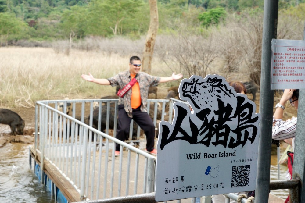 來到這裡還可以體驗觀光遊艇,登船的地點就在觀景樓的對面,路上有明確的指標。來回大約一個小時,遊艇上也有專人導覽,每經過一個點,導覽員就會講出該點的意義,不再只是看看湖面風光,而是能夠更了解曾文水庫的每個景點和內容。中間還停留到一個小島「山豬島」,抵達前遊艇會播放三大男高音帕華洛帝的歌聲,山豬們就會隨著音樂來到碼頭,可以付費餵食山豬。
