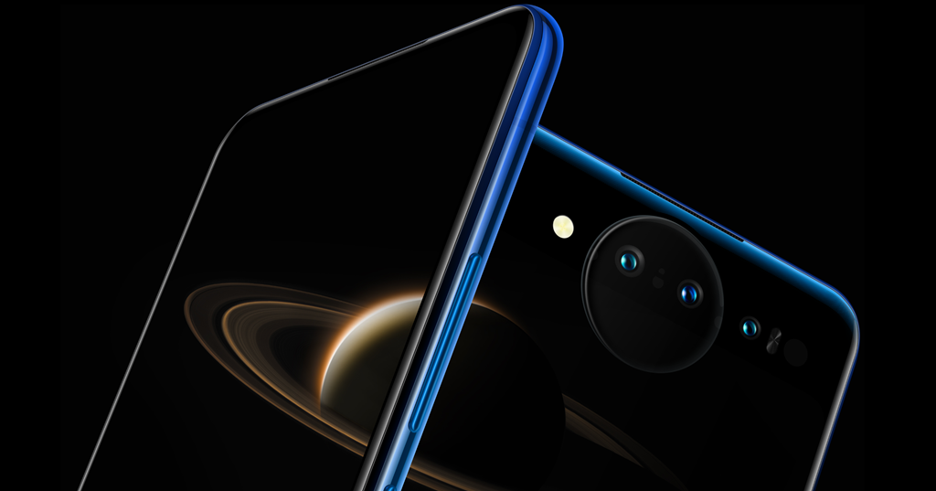 NEX 雙螢幕背面,除了搭載了 5.49 吋的 OLED 顯示器與鏡頭外,在螢幕上方還設計了一個非常特別的環狀燈,他們稱之為星環絢彩柔光燈,有一半的環狀是直接蓋在螢幕上面,對於目前所有手機螢幕最大的任務就是把任何妨礙螢幕顯示與妨礙占比的東西移走,為什麼反其道而行呢?