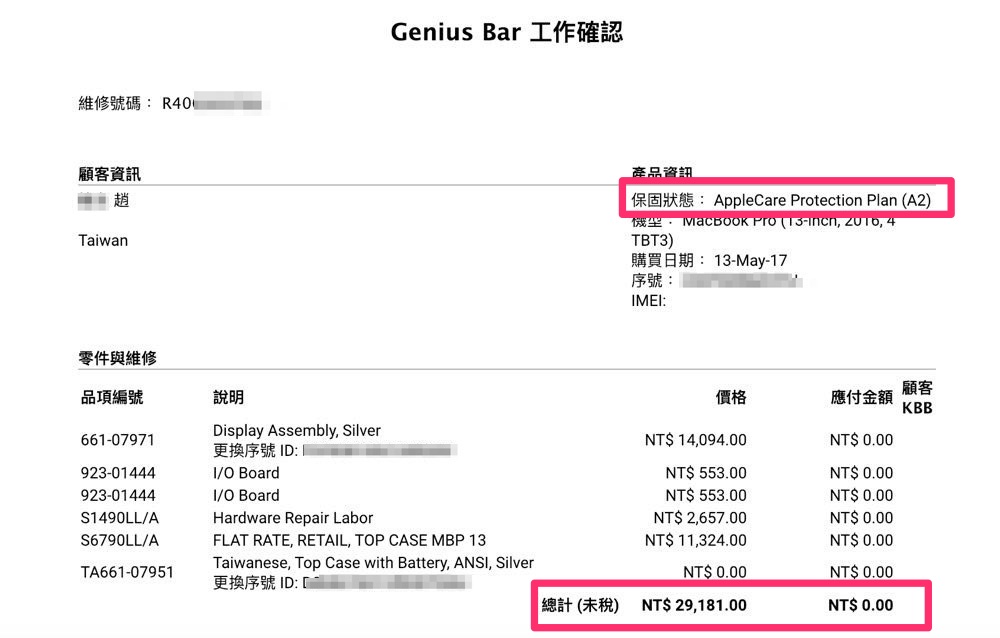 - 如果你也是靠 MacBook / iPad 吃飯的朋友、打算跟這台 MacBook / iPad 白頭偕老的朋友,Apple Care 真的是一個相當值得考慮的保障(修一次就回來了呀!!!)。