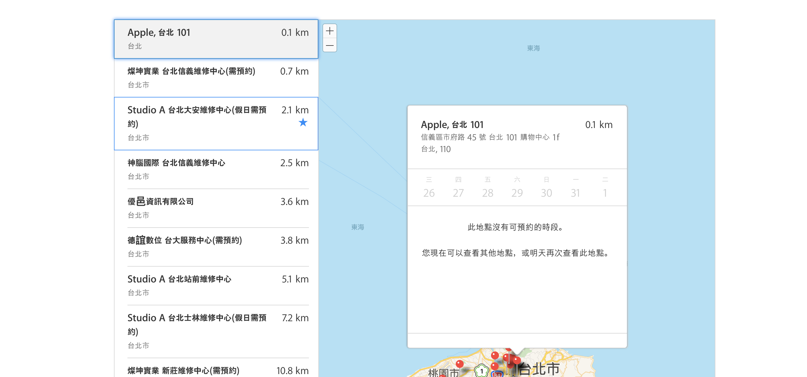 大家都知道 Apple Genius Bar 的預約程度不亞於搶演唱會門票,因此這邊建議每小時就上去看一次,一看到有藍色的時間出現,什麼都別考慮,直接預約下去。因為依照之前的經驗,只要停頓想一下那時候有沒有空,機會就真的是稍縱即逝了!