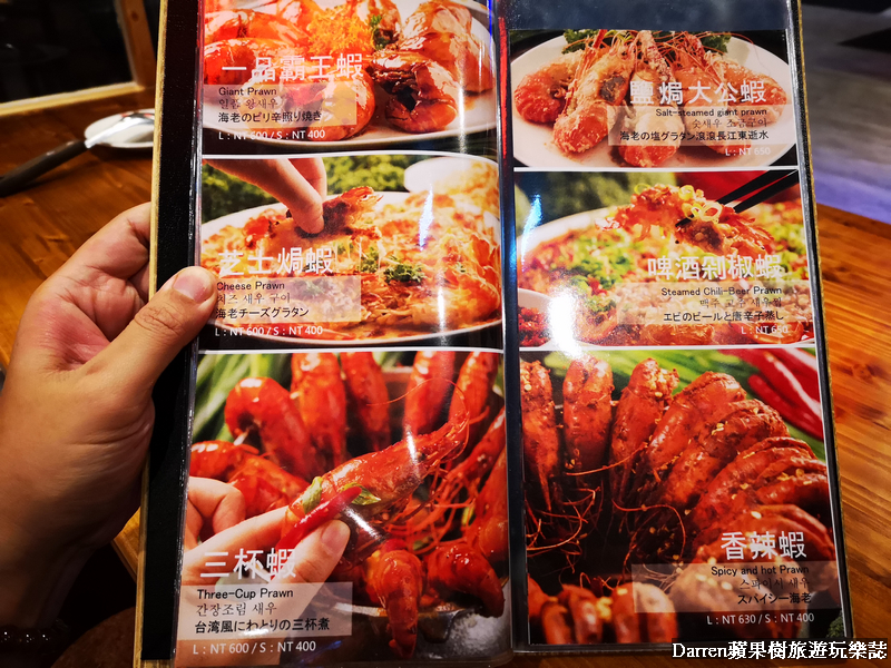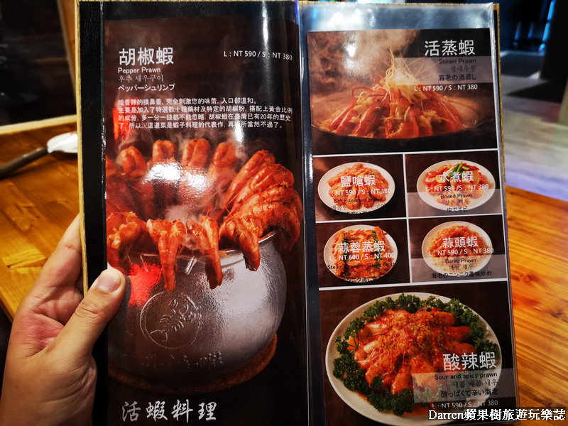 店內的服務人員服務態度很好,點餐時拿著平板過來點餐,而且還會回覆推薦人氣活蝦料理給我們參考要點哪道;活蝦料理有分為大份(14兩)和小份(8兩)兩種,都是水箱內現點現抓秤重,所以上桌料理的蝦子數量不太一定囉~一品活蝦推薦必點蝦料理:胡椒蝦、鹹酥蝦、金沙蝦,如果帶小朋友來沒辦法吃辣就點奶油蝦和水煮蝦。