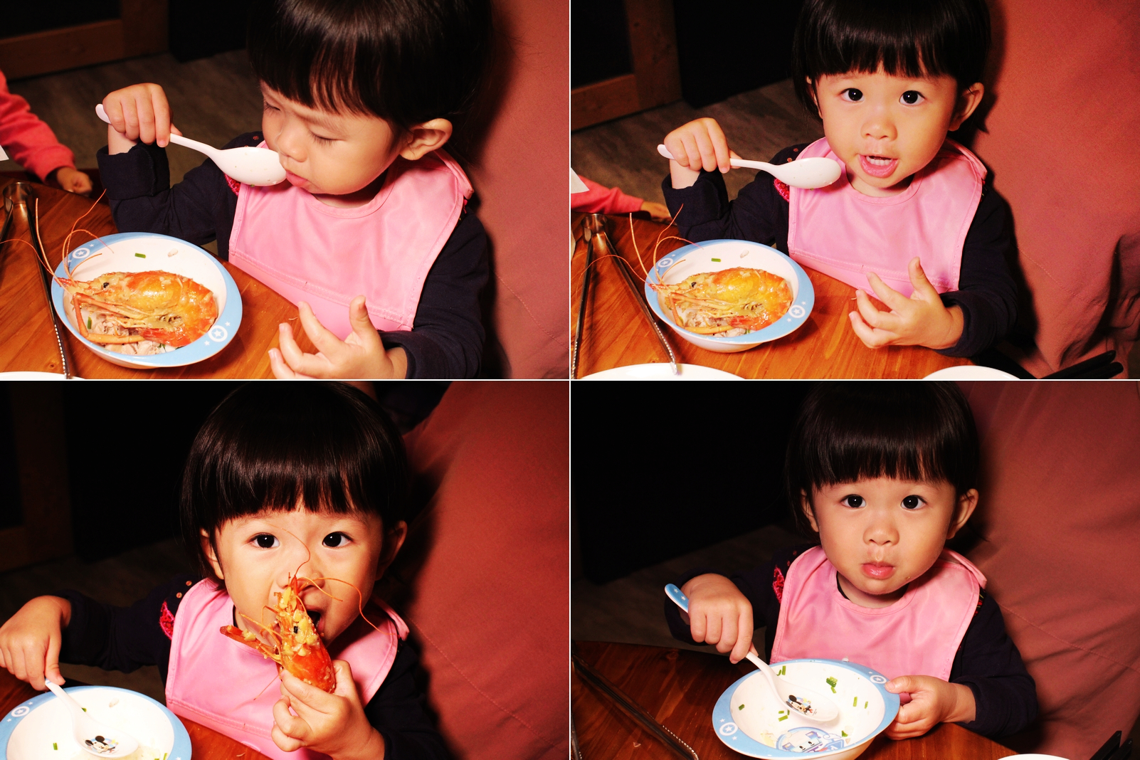 我可愛的小模特兒吃得可津津有味,對於這裡的蝦子都是活蝦而且經過檢驗品質把關,所以給小朋友吃真得很放心。
