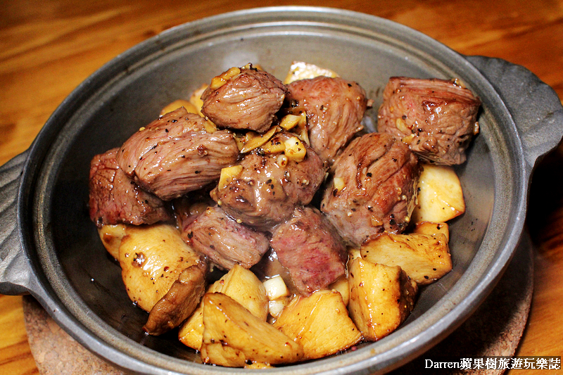 骰子牛是一品活蝦桃園店開幕活動打卡贈送(活動至2018年11月底截止),熱呼呼的鐵鍋裡頭骰子牛份量不少,這醬燒骰子牛屬於重口味很下飯,牛肉吃起來是滿滿的胡椒香和肉汁,底下還有爽脆的杏鮑菇,店家打卡送這道真得算挺有誠意,連牛肉都很厚實啊~