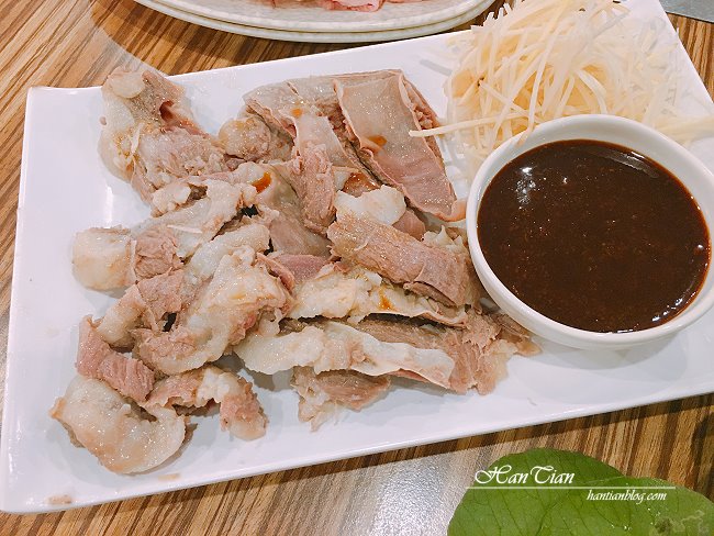 羊三層的口感比吃羊肉爐吃到的肉塊口感嫩很多!是好吃的,我也很喜歡,可惜沾醬對我來說略鹹,口味略重。