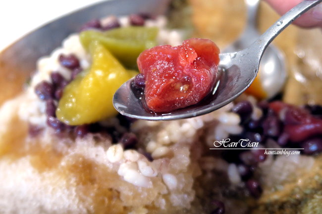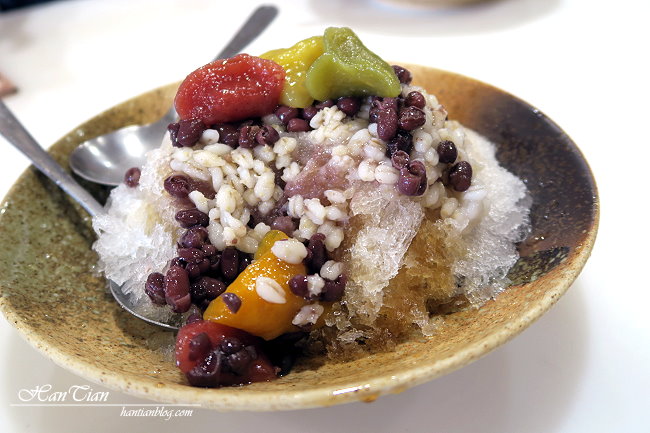 五行地瓜餃冰是現煮的,熱呼呼的放在冰上,我覺得有點像冷熱冰,吃起來很過癮。