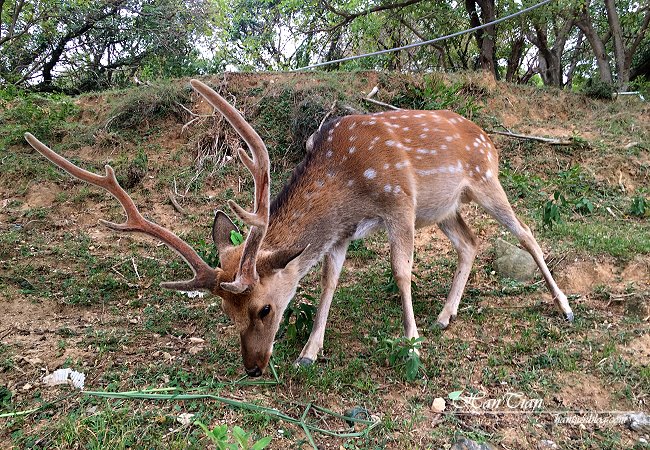 看梅花鹿的年齡從鹿角可以看得出來,像這隻就是還沒長角的幼鹿。