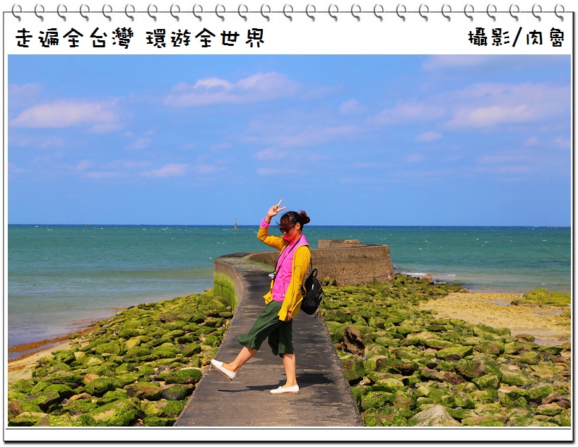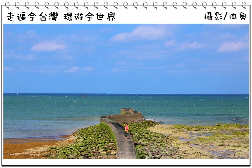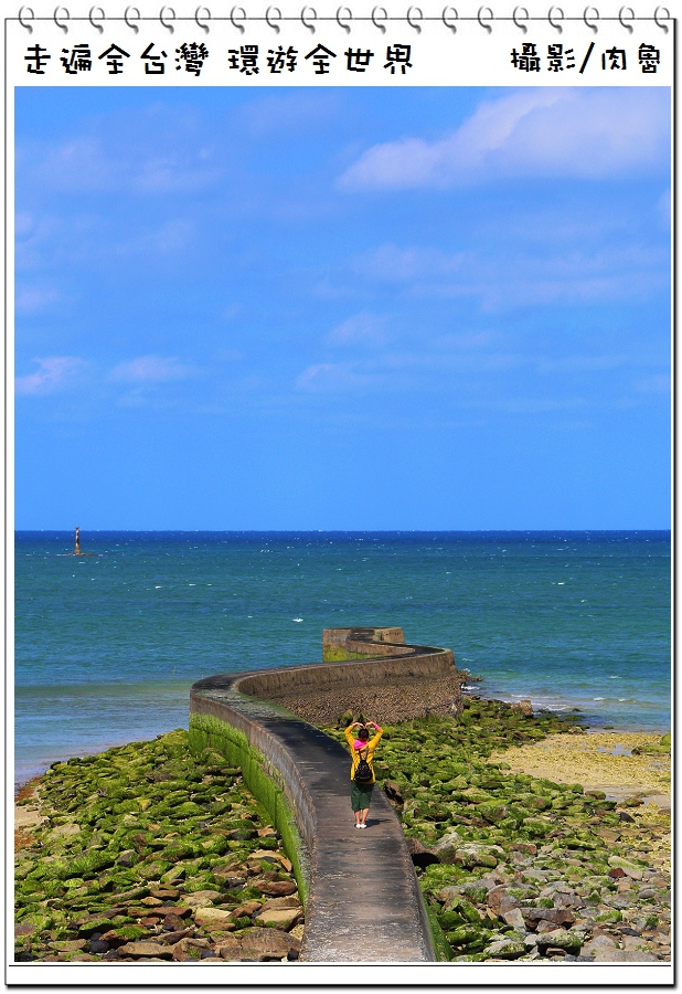 ▲看看這條海堤,先是右彎,再左彎,再右彎,再左彎,退潮後的海堤高度比一個人還要高,走在上面必須非常小心翼翼,老婆呆呆齡現在所站位置都是比較不濕滑的地方,繼續往前可見到海堤上面是黑色,再往前則是海藻覆蓋,走起來很滑有點危險性,其實在前段拍照就非常夢幻了,真的不建議往前走啊,不然一不小心滑倒跌落兩旁礁岩,性命可能就…真的要通往天堂了…!