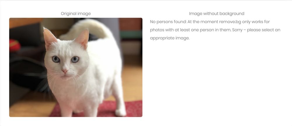 根據測試,目前 remove.bg 只針對人像部分有所反應,但對於人像之外,例如寵物、食物等目前則還無法進行辨識唷!