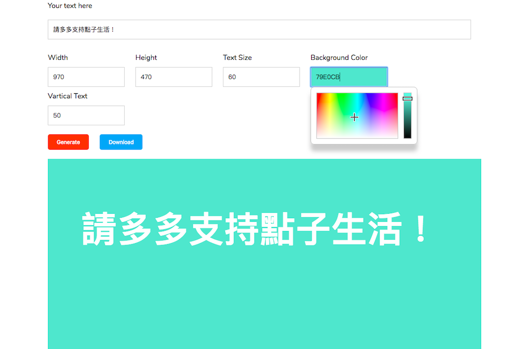 下方的「Generate」 可以讓我們來即時預覽我們所有的設定,再來調整、Generate、調整、Generate、調整、Generate… 的調到自己滿意的樣式。