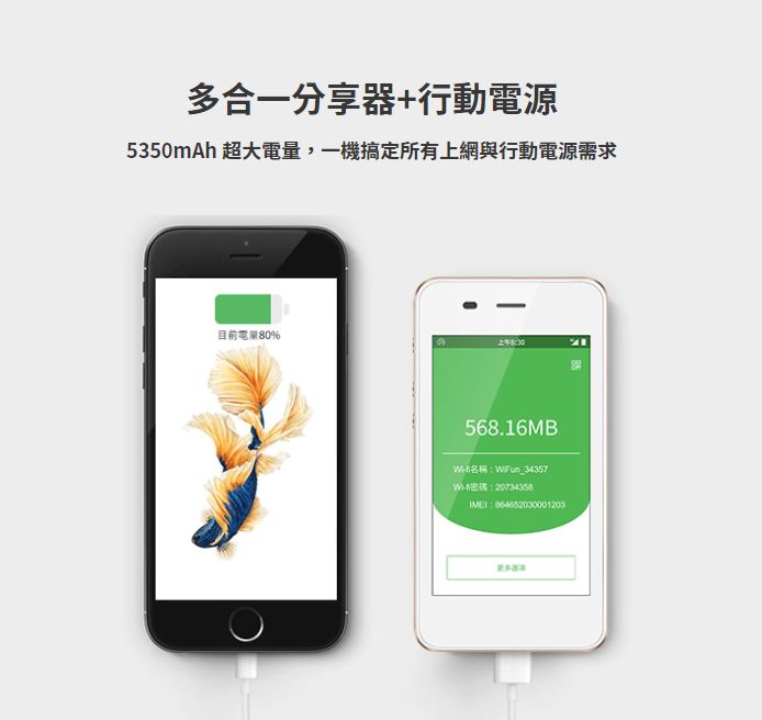 「WiFun G1611+上網分享器」提供全球89國上網服務,可根據個人旅遊國家及上網需求,隨時隨地線上加值流量方案,省去租借取還機麻煩,這對於頻繁出國、或時常國外出差的人而言是高CP值好選擇。另外出國最怕的就是手機沒電,WiFun G1611+內建5350mAh電量支援行動電源功能,即使出門在外也不用煩惱手機沒電。新品上市買就送價值$1310元全球通3GB流量包!