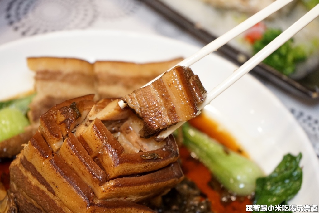 蘇杭壹刀肉,這道就厲害了!金字塔外型的梅干焢肉很威以外,也展示出刀工老練的切出0.3公分的薄肉片,層層堆疊再塞入梅干菜,是一道不平凡的手工菜,讓小結巴一秒變大廚可以端出這道名菜。(謎之聲:小米不想活了…..)