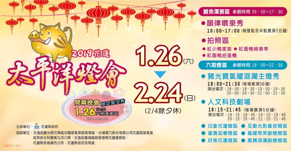 2019新春最佳視覺饗宴2019花蓮太平洋燈會從白天玩到夜晚,從水上玩到陸上!不管怎麼玩都好玩!