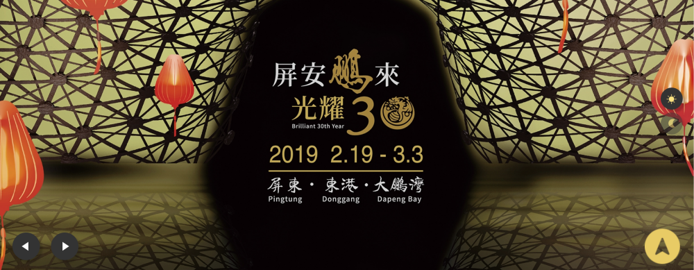 「2019台灣燈會」預定於108年2月19日至3月3日在屏東舉辦,第30屆台灣燈會被賦予燈會轉型與開創的任務而具承先啟後意義,因此以「屏安鵬來 ·光耀三十」為主題。此次燈會共有大鵬灣燈區、屏東燈區(綵燈節)及東港燈區3大燈區,主燈所在之大鵬灣燈區,燈會場地面積達42公頃,具3大特色: