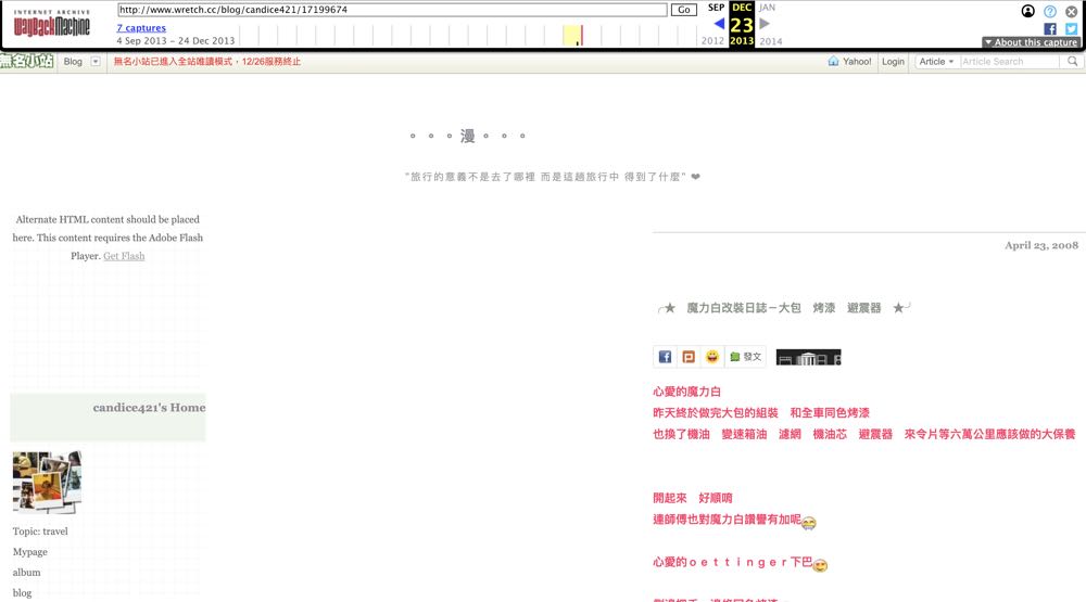 經關閉,但若是想念以前的照片、文章,或是自己當時的版型之類的,現在就有一個辦法“或許”能夠成功看到自己在無名的文章與照片唷!