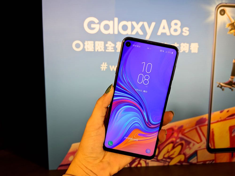 Galaxy A8s 預計在 2 月 1 日起在全台三星體驗館、三星智慧館、三星商城、台灣大哥大以及各大經銷通路上市,消費者只要在 2 月 28 日前購買就送限量「雙向閃電快充行動電源 10,000mAh」,單機售價為 NT$14,990 元,共有漸層黑、漸層藍兩色。