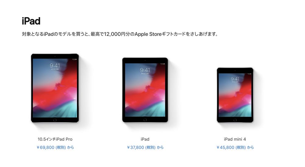 iPad – 最多有 12,000 円 Apple Store Gift Card