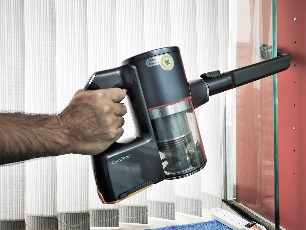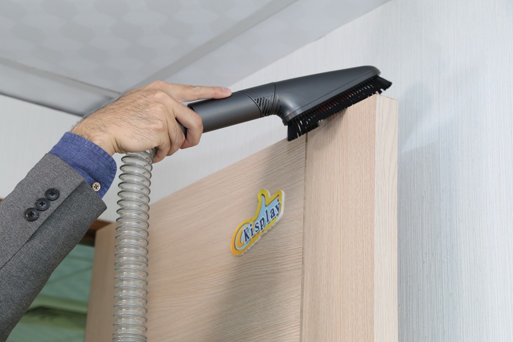 門窗的上緣、櫃子的上方,很容易視若無睹的不去清理,因為除了不好清理外,也找不到方便的工具。但 LG CordZero A9+ 的彈性伸縮軟管搭配多角度軟毛吸頭,看來就可以解決這問題。伸縮軟管可變換超多角度,搭上多角度軟毛吸頭,邊掃邊吸,一下就把髒污灰塵去除。