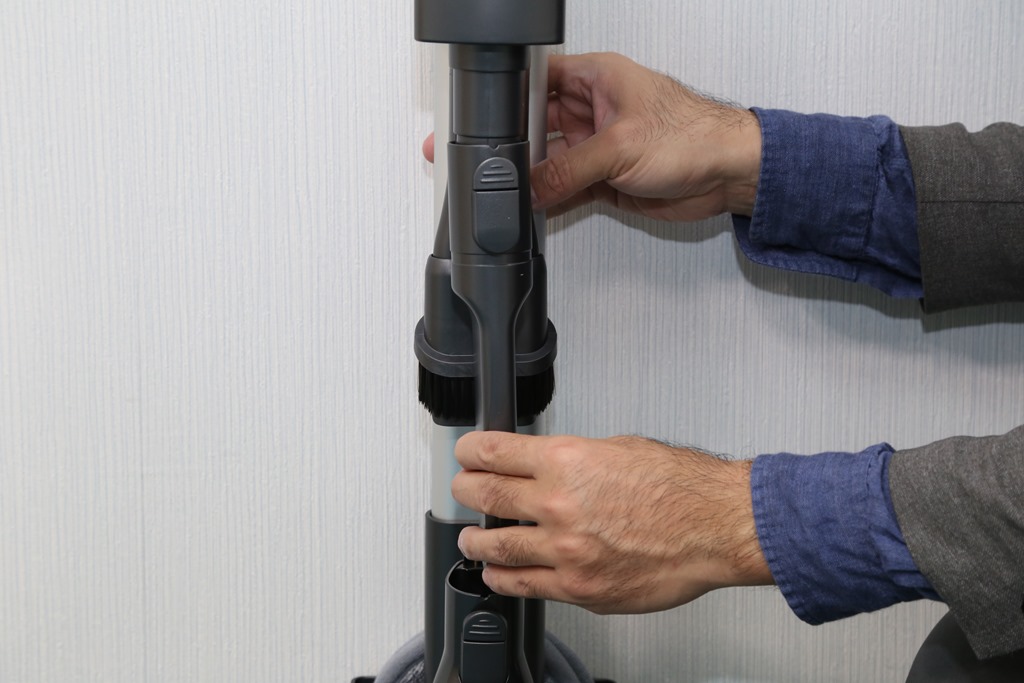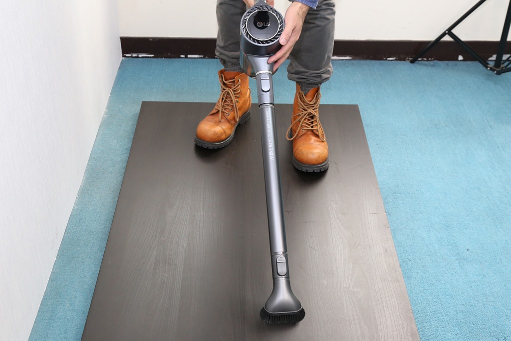 LG CordZero A9+ 的吸管是可以調節長短的,高度從 90 公分到 112 公分,總共有四段可調整,除了不同身高的朋友都可以方便使用外,在不同環境下也可以調整長短使用。如果要在狹窄的空間使用,還能直接將吸管拔起,直接接上專用吸頭就可以。