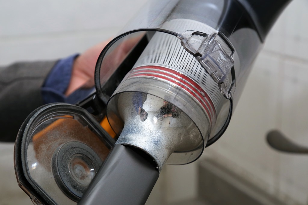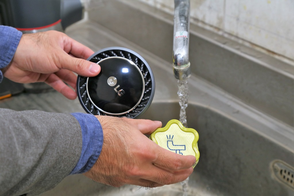 LG CordZero A9+ 從氣旋、金屬濾網、前置濾網、HEPA濾網都可以用水清洗,而且拆卸容易,以金屬濾網來說,只要用縫隙吸頭插上旋轉就可以轉開,非常方便。