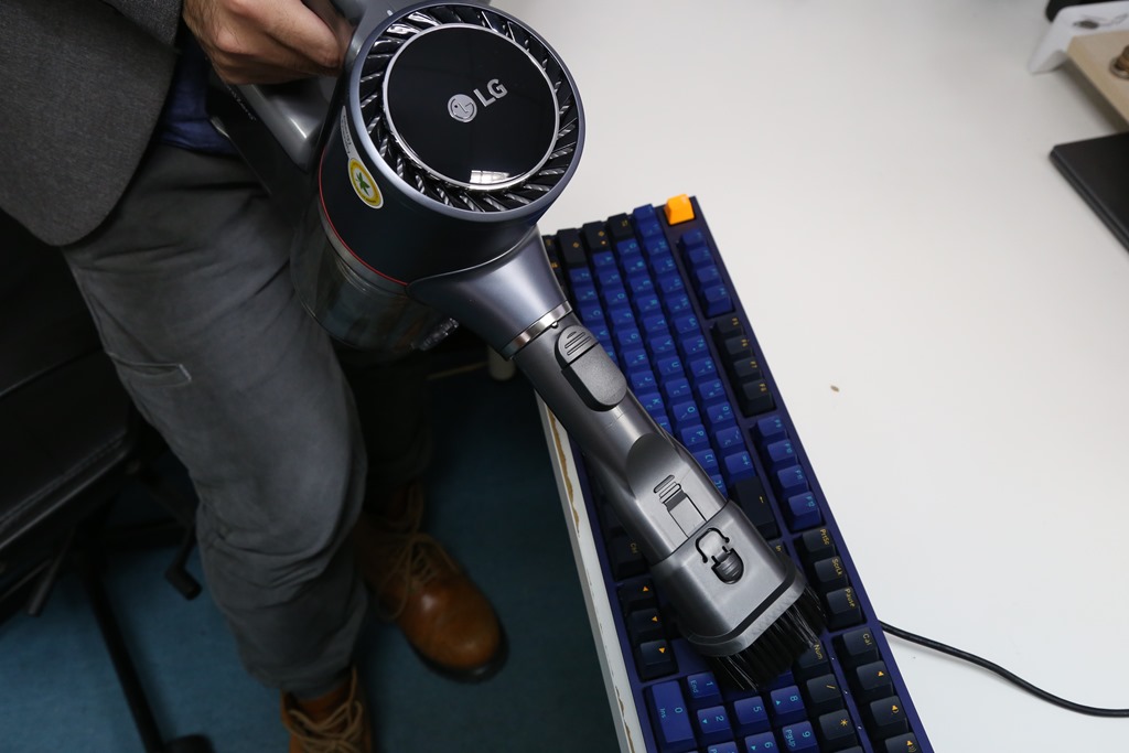 另外可換電池也是非常必須的,打掃就要一鼓作氣,如果沒電了,充電又要等上好幾個小時,真的很無力。LG CordZero A9+ 兩顆電池在直立開啟弱吸力模式下,官方資料說明可以清理 40 分鐘,兩顆電池就 80 分鐘,看來就算家中有上百坪也夠用了。