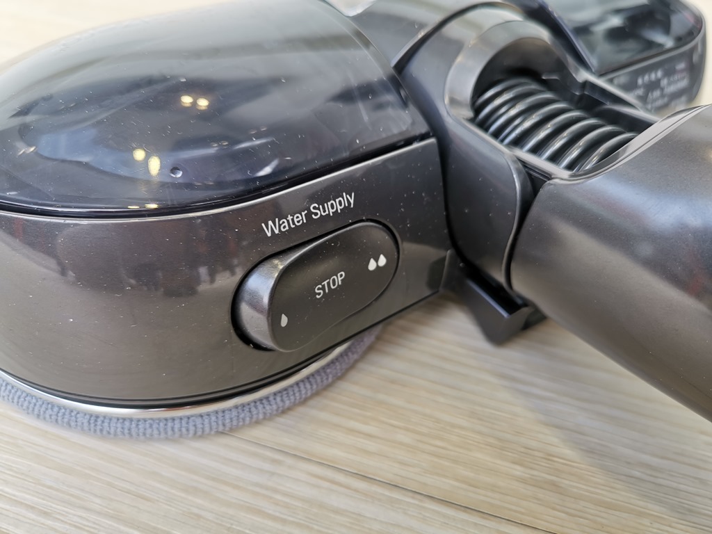這是透過智慧供水系統供水,在拖地時稍微加壓吸頭,水才會自動出來