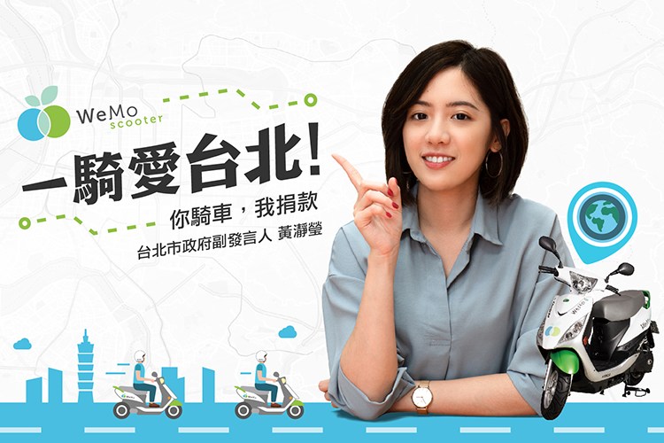 威摩科技 WeMo Scooter 秉持以租代買精神,全力推廣共享綠色運輸。宣布啟動愛台灣年度公益計畫-「騎一捐一」捐款活動,即日起至3月15日消費者每騎乘一趟 WeMo Scooter,威摩科技即捐贈 1 元給台灣環境資訊協會,作為環境知識推廣與生態保護的綠色基金。 WeMo Scooter 公益計畫更獲國民學姊-臺北市政府副發言人黃瀞瑩響應,號招更多人一起正視不必要的私有載具對環境影響,聚集一元捐款力量,一「騎」愛地球。