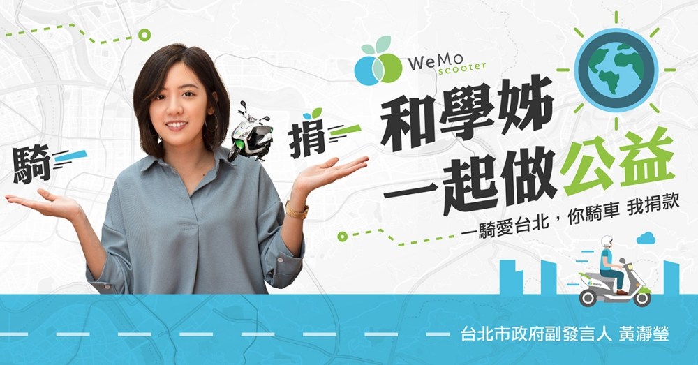 身為 U-motor 代表 WeMo Scooter ,首度邀請臺北市政府副發言人黃瀞瑩響應愛台灣「騎一捐一」公益計畫。臺北市政府副發言人黃瀞瑩表示:「台北市政府除全力發展公共運輸外,也積極與民間業者合力共創共享綠能交通4U服務,包含 Youbike、 U-motor、共享汽車與停車空間都是發展重點,希望藉由響應公益活動,藉此鼓勵更多人響應共享運具,打造台北為未來智慧城市。」