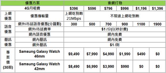 亞太電信Samsung Galaxy Watch LTE資費方案